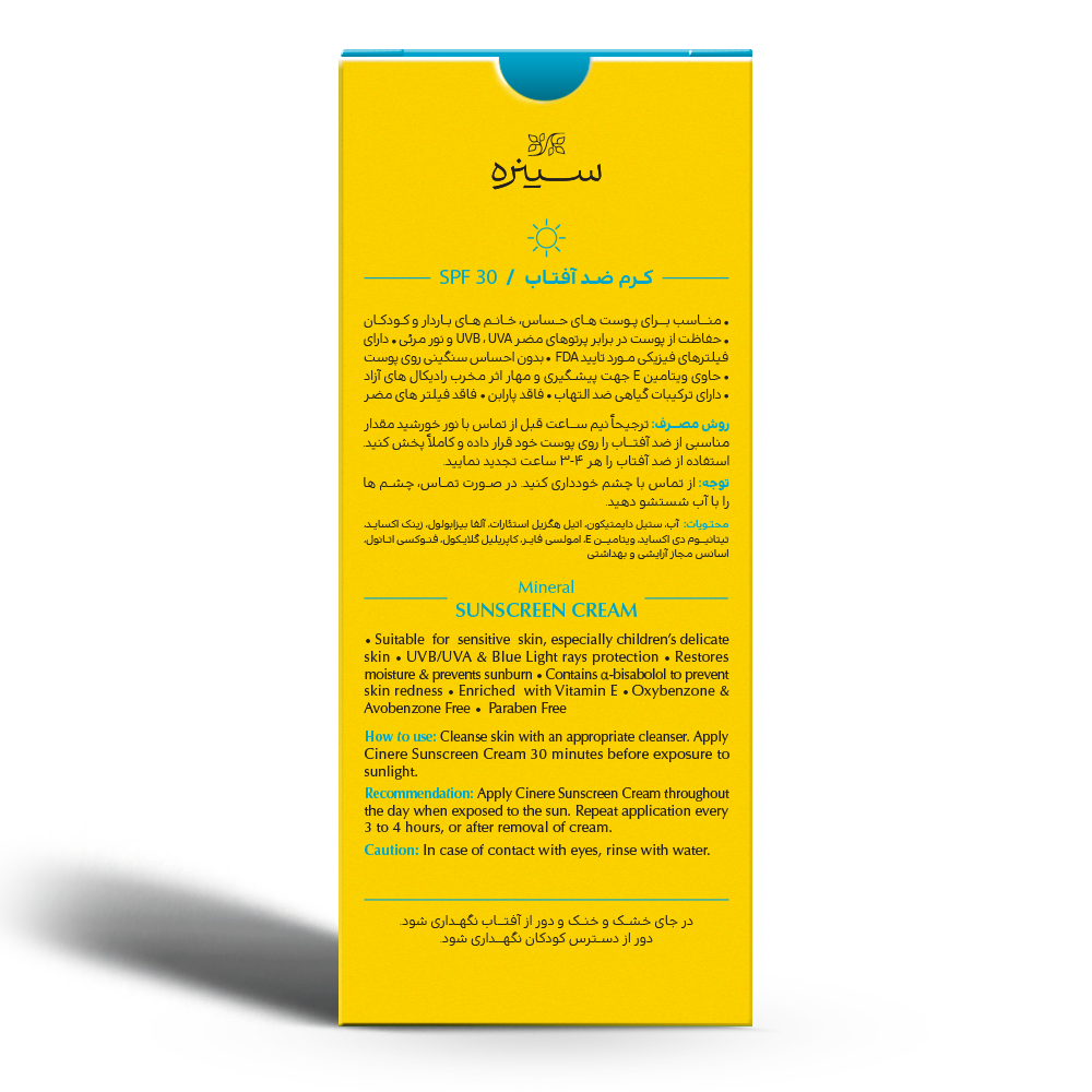 کرم ضدآفتاب مینرال رنگی SPF 30 سینره